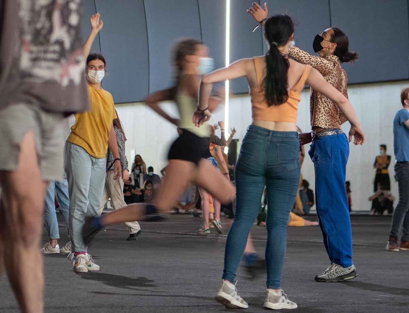 Ensuite pour un public attentif et probablement heureux de pouvoir renouer et partager avec une forme hyper-collective d’une danse chère à Boris Charmatz. Certes cette tempête de gestes était celle de danseurs restant à distance les uns des autres. Comme le rappelait le chorégraphe : »On aimerait se toucher, danser tous ensemble, mais ce sera pour plus tard. Nous allons performer sur place, ensemble, mais séparés… J’ai tout de même envie que nous arrivions à une forme de tempête ! »