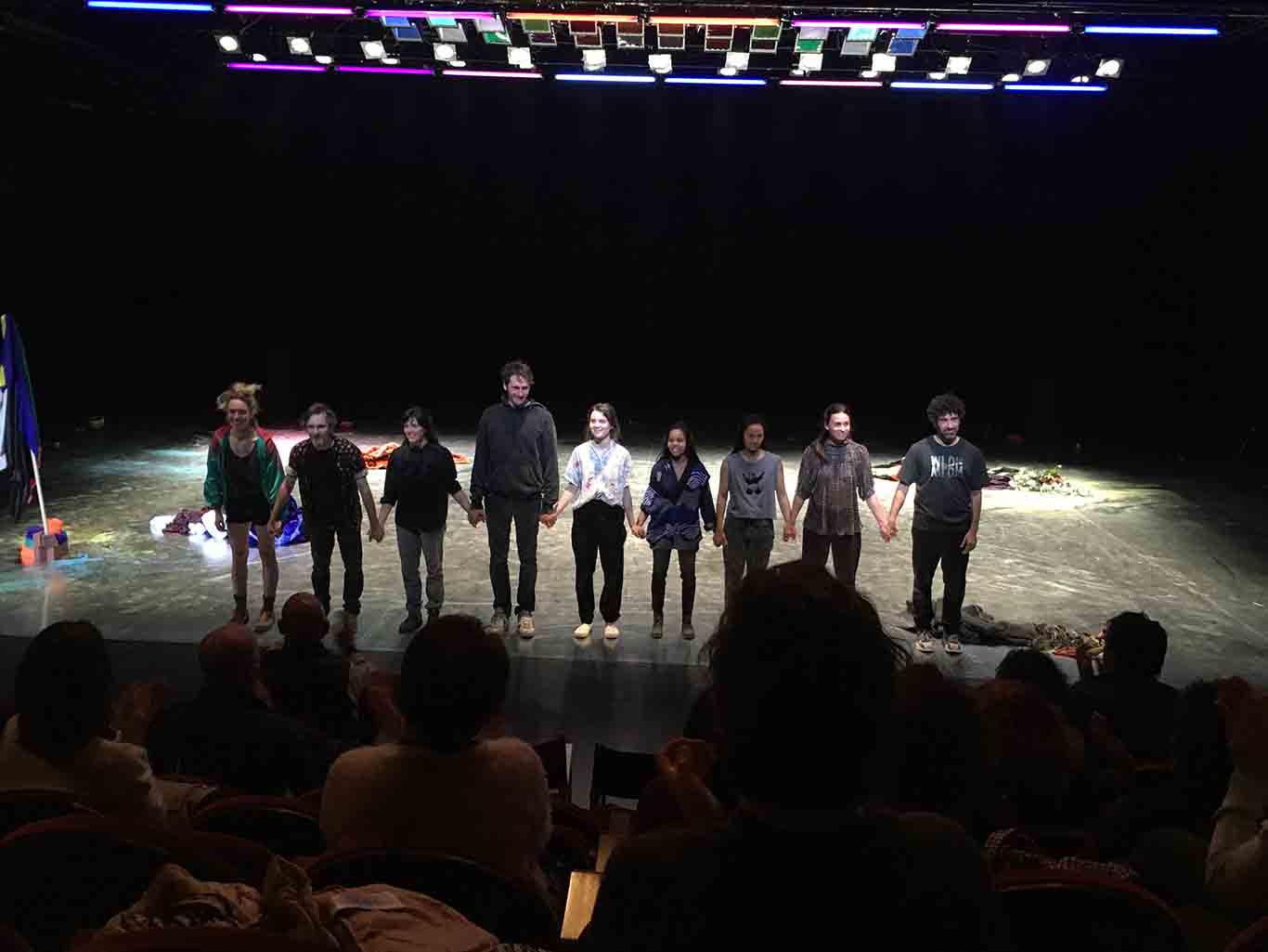 En septembre 2020 nous avions assisté, au Théâtre de la danse de Chaillot, à une répétition de People United une création en cours de Joanne Leighton. La chorégraphe d’origine australienne vivant en France avec sa compagnie WLDN, expliquait au public présent qu’elle travaillait avec les danseurs à partir d’un corpus d’images photographiques qu’elle avait constitué depuis de nombreuses années. Photographies de rassemblements collectifs, d’évènement festifs, de diverses célébrations de par le monde collectées depuis plus de 10 ans. À partir de cet atlas la chorégraphe se proposait de dégager les gestes les plus universels et de leur redonner corps sur un plateau de danse. Quelques mois ont passé et cette ultime création People United vient clore une trilogie débutée avec les pièces 9000 pas (2015) et Songlines (2018).